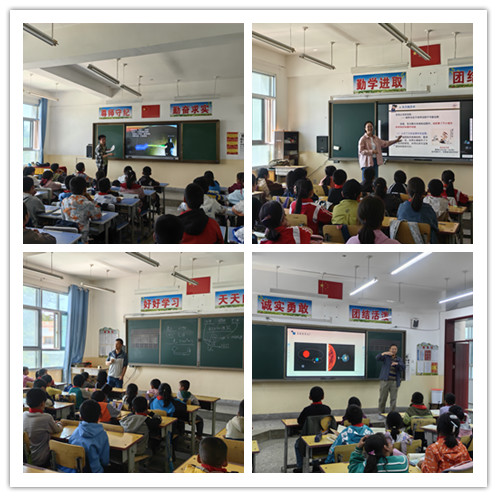 與會人員為王泉村鷺島小學(xué)孩子們帶來了系列科普報告,送學(xué)下鄉(xiāng),將習(xí)近平總書記智志雙扶要求落在具體關(guān)愛舉措中。材料輻照效應(yīng)室副研究員、九三學(xué)社社員李宗臻以《名偵探柯南與科學(xué)探秘之返老還童》為題,通過動漫柯南中的故事情節(jié),引入了細(xì)胞凋亡、提純技術(shù)、化學(xué)反應(yīng)等科學(xué)知識,生動地表達了科學(xué)源于生活,科學(xué)無處不在。原子分子結(jié)構(gòu)與動力學(xué)室副研究員、九三學(xué)社社員張瑞田以《絢麗的天文觀測和有趣的原子世界》為題, 告訴同學(xué)們天文望遠(yuǎn)鏡為我們了解宇宙打開了一扇窗,萬物皆由原子組成,天文觀測主要是光譜,而加速器原子物理實驗為我們揭秘絢麗的天文現(xiàn)象搭建了一座橋梁。核電子學(xué)室高級工程師、九三學(xué)社社員蒲天磊作了題為《神奇的電——電的故事與安全用電》報告, 講述了人類從發(fā)現(xiàn)電到應(yīng)用電的一系列故事,科普了相關(guān)原理,進行了安全用電教學(xué)。所級公共平臺高級實驗師、九三學(xué)社社員李小剛則通過《世界的大與小》,讓小朋友們認(rèn)識了宇宙的浩瀚無邊和微觀世界的微不可見。豐富廣泛的主題,深入淺出的講解,讓同學(xué)們聽得入神、受益良多。