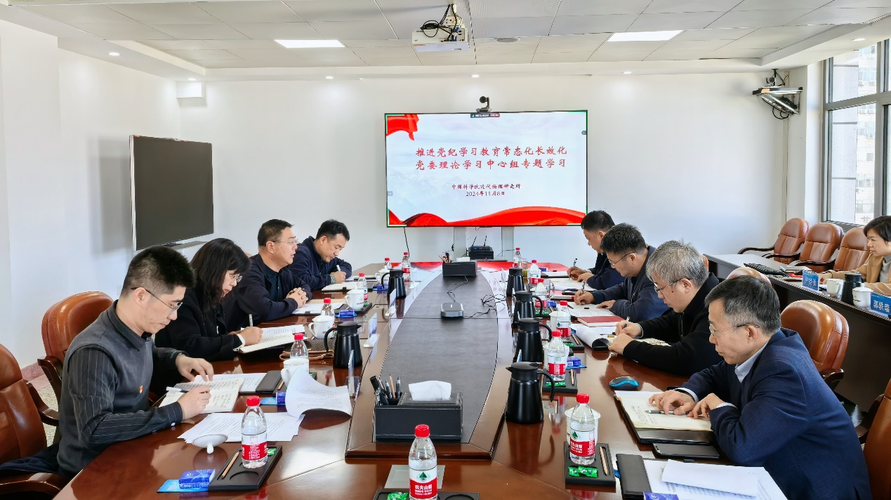 會(huì)上,胡正國以《建立健全黨紀(jì)學(xué)習(xí)教育常態(tài)化長效化機(jī)制,以嚴(yán)明黨紀(jì)為搶占科技制高點(diǎn)凝神聚力》為題作專題學(xué)習(xí)報(bào)告,帶領(lǐng)中心組成員集體學(xué)習(xí)了習(xí)近平總書記重要指示精神和黨中央、院黨組相關(guān)文件精神,回顧了研究所扎實(shí)開展黨紀(jì)學(xué)習(xí)教育情況,總結(jié)有益經(jīng)驗(yàn),查找問題不足,并對(duì)推進(jìn)研究所黨紀(jì)學(xué)習(xí)教育常態(tài)化長效化進(jìn)行了部署,明確了工作思路和職責(zé)分工。