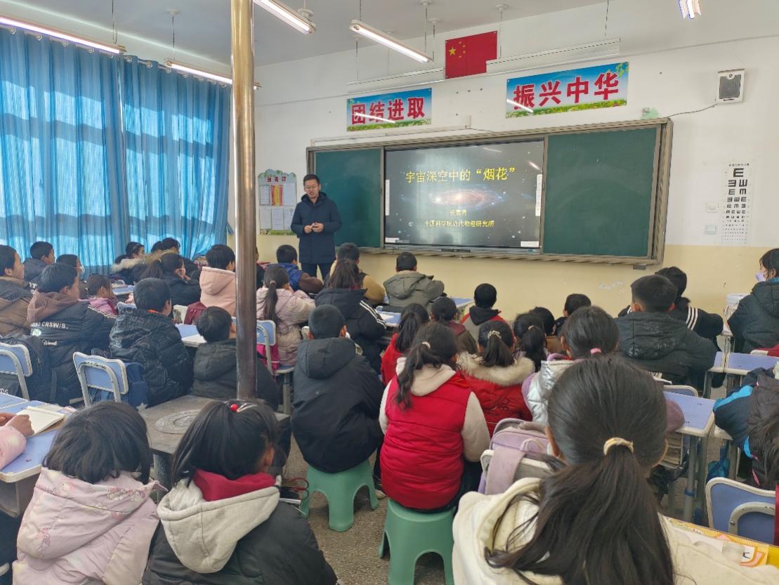 為建立健全結(jié)對(duì)開(kāi)展教育幫扶工作機(jī)制,近代物理所研究員、首屆中國(guó)科技青年論壇一等獎(jiǎng)獲得者侯素青老師受聘王泉小學(xué)擔(dān)任“科技教師”,并作了題為《宇宙深空中的“煙花”》的科普?qǐng)?bào)告。