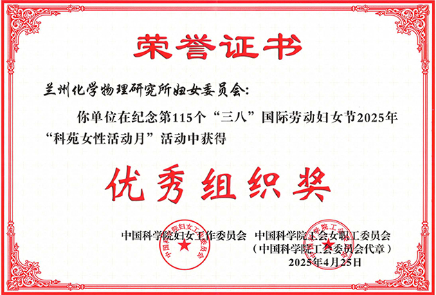 近日,中國科學(xué)院婦女工作委員會(huì)、中國科學(xué)院工會(huì)女職工委員會(huì)公布了2025年中國科學(xué)院“科苑女性活動(dòng)月”獲獎(jiǎng)名單。中國科學(xué)院蘭州化學(xué)物理研究所婦女委員會(huì)獲優(yōu)秀組織獎(jiǎng),也是連續(xù)三年獲得該榮譽(yù)。