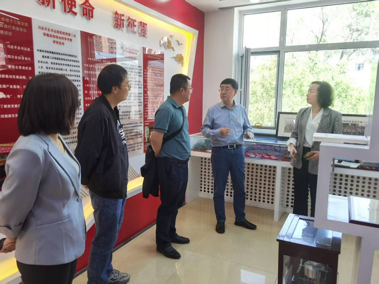 會后,與會黨員參觀了鹽湖科技展廳、黨建所史展覽室,青海鹽湖所副所長(主持工作)鄭詩禮陪同參觀。