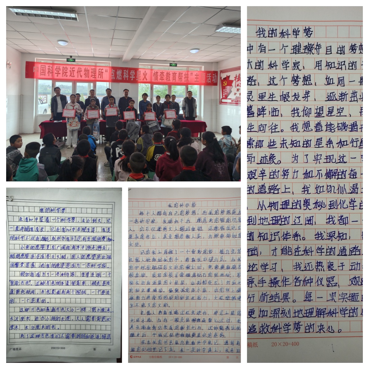 報(bào)告結(jié)束后,近代物理所黨辦相關(guān)同志為“我的科學(xué)夢(mèng)”主題征文比賽中獲獎(jiǎng)同學(xué)頒發(fā)了證書和獎(jiǎng)品。陳家集鎮(zhèn)黨委書記楊文華代表鎮(zhèn)黨委政府,對(duì)近代物理所長(zhǎng)期以來在“智志雙扶”方面給予的大力支持表示衷心感謝,并向研究所贈(zèng)送了題為“教育幫扶育桃李,情暖校園映初心”的錦旗。