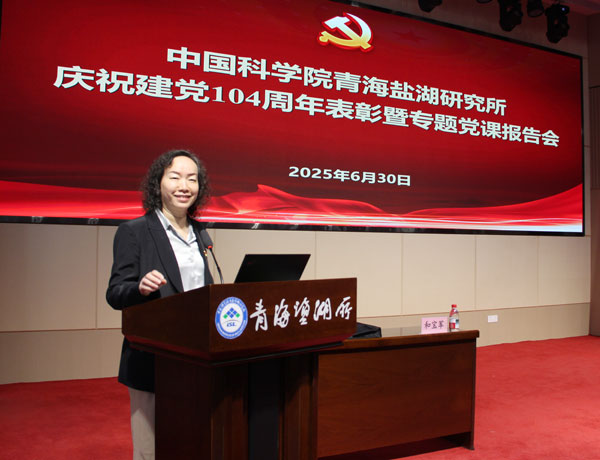 為慶祝中國(guó)共產(chǎn)黨成立104周年,進(jìn)一步增強(qiáng)中國(guó)科學(xué)院青海鹽湖研究所各級(jí)黨組織的凝聚力、戰(zhàn)斗力和創(chuàng)造力,增強(qiáng)廣大黨員的榮譽(yù)感和責(zé)任感,6月30日,青海鹽湖所舉辦慶祝建黨104周年表彰暨專題黨課報(bào)告會(huì)。所領(lǐng)導(dǎo)、所黨委委員、全體職工黨員和研究生黨員參加會(huì)議。黨委副書(shū)記、副所長(zhǎng)王建萍主持會(huì)議。