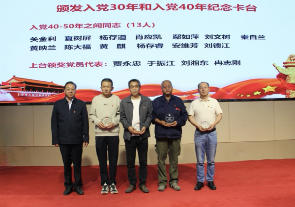 會(huì)議宣讀了“光榮在黨50年”紀(jì)念章獲得者名單,所黨委委托西安二部黨支部開(kāi)展紀(jì)念章頒發(fā)活動(dòng)。會(huì)議頒發(fā)了入黨30年和入黨40年紀(jì)念卡臺(tái),全所28名在冊(cè)黨員獲得入黨30年紀(jì)念卡臺(tái),13名在冊(cè)黨員獲得入黨40年紀(jì)念卡臺(tái)。通過(guò)頒發(fā)活動(dòng)激勵(lì)全所黨員同志進(jìn)一步強(qiáng)化黨員身份認(rèn)同,時(shí)刻牢記入黨初心使命,永葆先進(jìn)本色,在新時(shí)代新征程上接續(xù)奮斗,再現(xiàn)新?lián)?dāng)、新作為。