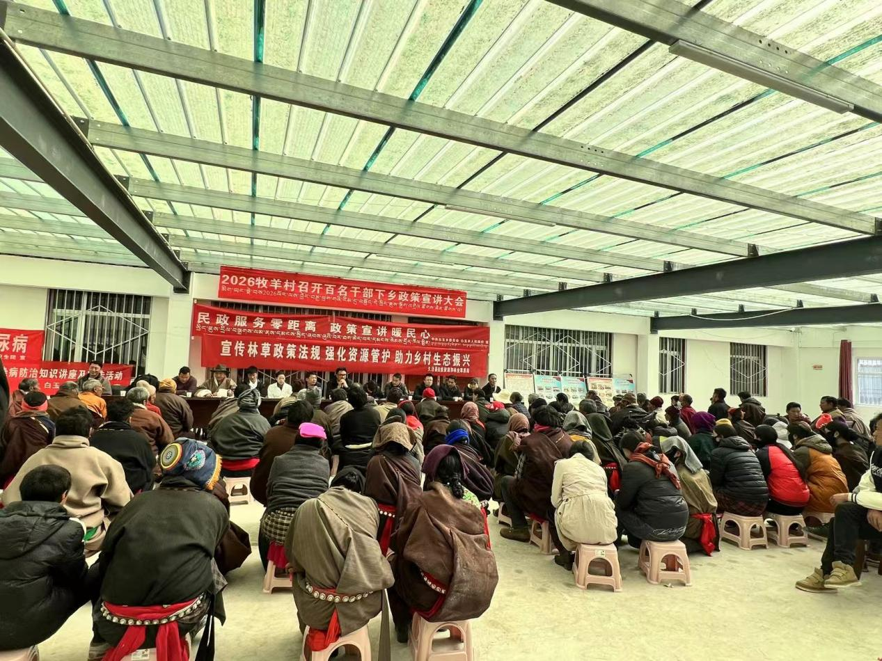 為推動2026年中央一號文件精神落地見效,扎實(shí)落實(shí)“百名干部下鄉(xiāng)”工作部署,3月12日,中國科學(xué)院西北高原生物研究所駐村工作隊(duì)協(xié)助白玉鄉(xiāng)黨委、政府,深入開展中央一號文件精神專題宣講活動。久治縣公安局、應(yīng)急管理局、檢察院、自然資源局、人社局干部,白玉鄉(xiāng)聯(lián)點(diǎn)領(lǐng)導(dǎo),駐村工作隊(duì)第一書記祁振軍、工作隊(duì)員羅崇亮,以及牧羊村“兩委”和黨員、群眾代表等180余人參加活動。