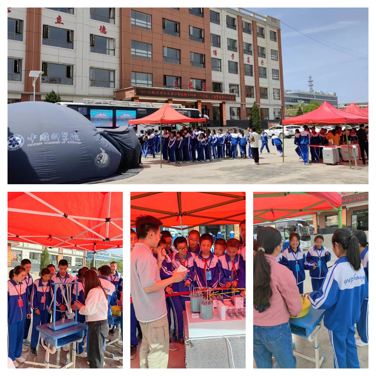 在為期七天的活動中,“科學快車”以球幕影院、車廂內(nèi)互動展廳、戶外可移動展區(qū)等多種形式向同學們展示了中科院近年來重大創(chuàng)新科技成果,通過豐富多彩的展品、利用沉浸式環(huán)境和交互式手段,讓青少年在參與和互動中體驗到神奇的科技世界:在球幕影院,360度球幕科普微電影讓同學們直觀感性體驗了科學探索太空、科學和諧自然、科學服務人類,領略了神奇的科技魅力,激發(fā)了偉大的科技夢想,球幕影院不時傳出孩子們的驚嘆與歡笑聲;在車廂內(nèi)互動展廳,深空、深海、深地和深藍四個領域的科研成果深深吸引了同學們的眼球,他們有的小聲地與身邊的伙伴交流著,有的聚精會神地閱讀展板上的介紹文字,特別是當同學們帶上VR眼鏡時,可身臨其境的體驗“深海探險”,孩子們歡呼雀躍、意猶未盡;在戶外可移動展區(qū),通過科普志愿者的精彩講解,同學們近距離觀察了中國空間站互動模型、天地一體化量子信息通信網(wǎng)絡樣機模型、智能制造機械臂模型、大型低溫制冷裝備模型、人工合成淀粉模型和人造太陽裝置模型等近年來中科院重大創(chuàng)新成果的模型展品,并且親自體驗了“會跳高的珠子”、“磁阻尼演示儀”和“溫柔的電擊”等互動性強的科普展品,加深了對相關科學原理的認知。