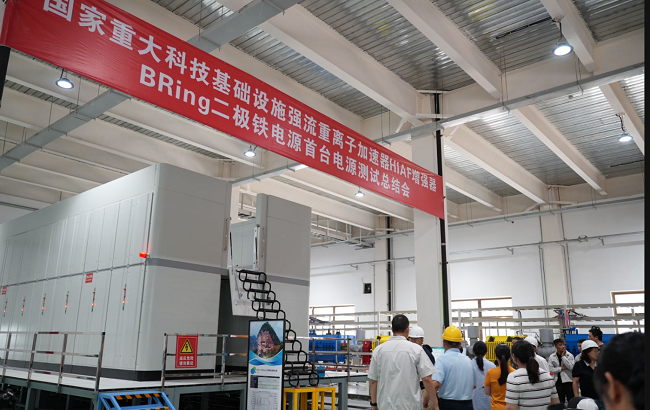 7月7日,國(guó)家重大科技基礎(chǔ)設(shè)施強(qiáng)流重離子加速器增強(qiáng)器 BRing 二極鐵電源首臺(tái)暨國(guó)家重點(diǎn)研發(fā)計(jì)劃“大科學(xué)裝置前沿研究”非諧振快上升速率磁鐵電源測(cè)試總結(jié)會(huì)在甘肅省天水市召開。由中國(guó)科學(xué)院近代物理研究所設(shè)計(jì)、天水電氣傳動(dòng)研究所和四川英杰電氣有限公司為主生產(chǎn)的國(guó)際首臺(tái)大型非諧振全儲(chǔ)能快循環(huán)脈沖電源通過(guò)專家組現(xiàn)場(chǎng)測(cè)試。