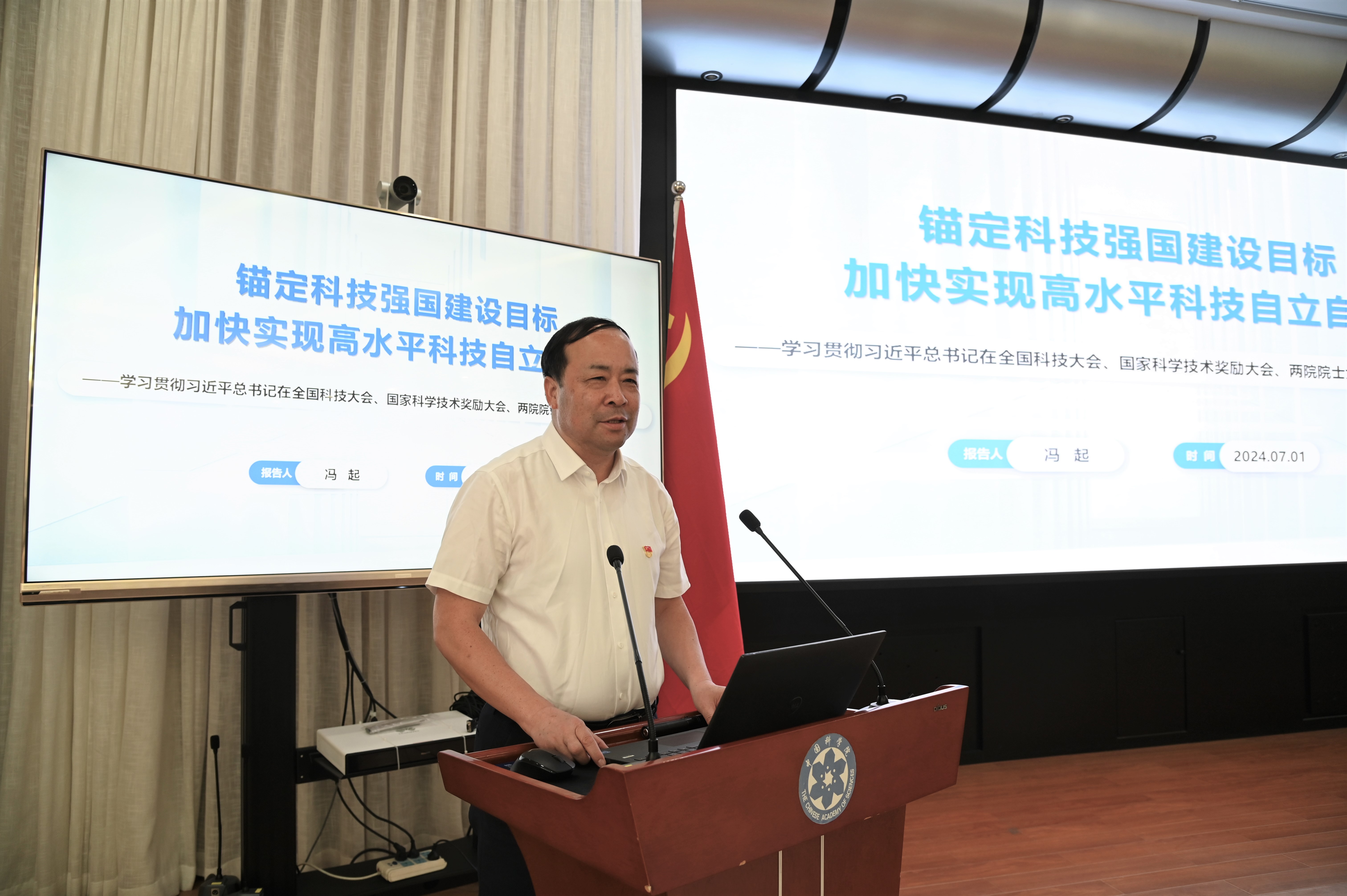 蘭州分院分黨組書記、院長馮起作《錨定科技強國建設(shè)目標(biāo)? 加快實現(xiàn)高水平科技自立自強》專題報告,傳達學(xué)習(xí)習(xí)近平總書記重要講話和全國科技大會精神。他強調(diào),科技興則民族興,科技強則國家強,要牢記國家戰(zhàn)略科技力量職責(zé)定位,面向國家重大需求和科技前沿持續(xù)凝練與組織實施重大科技任務(wù),要深刻認識科技的戰(zhàn)略先導(dǎo)地位和根本支撐作用,學(xué)習(xí)科技新知識、掌握科技新技能、增強推動科技工作新本領(lǐng),在搶占科技制高點新征程中貢獻更多力量,為科技事業(yè)發(fā)展再立新功。