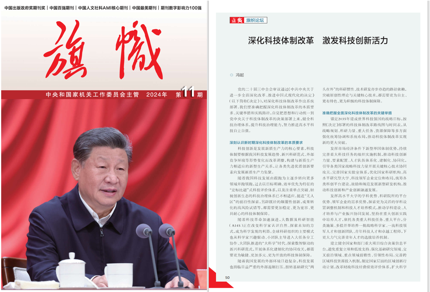 《旗幟》雜志刊發(fā)馮起院士署名文章《深化科技體制改革 激發(fā)科技創(chuàng)新活力》