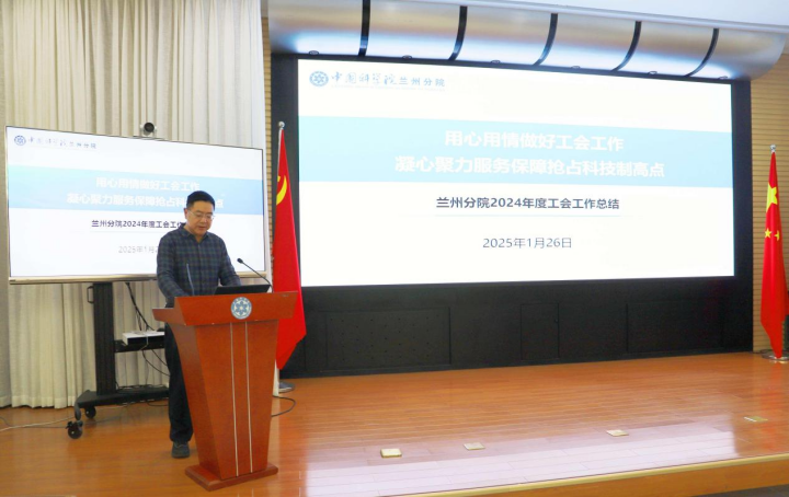 蘭州分院分黨組成員、紀(jì)檢組組長、系統(tǒng)單位紀(jì)委書記吳建剛作2024年度蘭州分院財(cái)務(wù)資產(chǎn)報(bào)告和工會工作報(bào)告,介紹了2024年分院的經(jīng)濟(jì)運(yùn)行狀況,回顧了工會工作取得的成效,并表示在新的一年里,工會將繼續(xù)發(fā)揮橋梁紐帶作用,用心用情服務(wù)廣大職工。