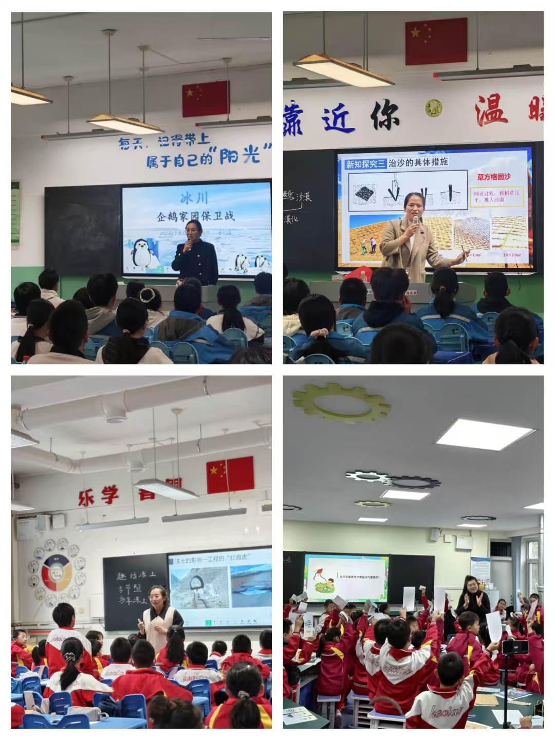 實踐創(chuàng)作環(huán)節(jié)則強調了直觀易懂和學科優(yōu)勢。教師們在雙導師的指導下,圍繞冰川、凍土、沙漠和大氣四個方向進行了教學案例的創(chuàng)作,并將創(chuàng)作成果帶入中小學課堂進行科學公開課展示,獲得一致好評。