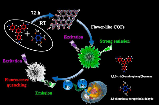 圖1 花狀COFs用于Cys/Hcy的高靈敏熒光檢測(cè)