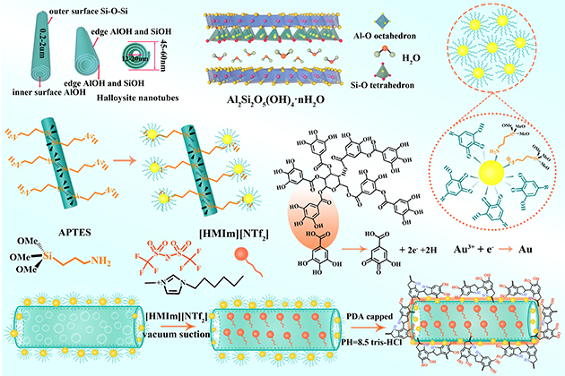 圖2 HNTs/Au@[HMIm][NTf2]微膠囊制備示意圖