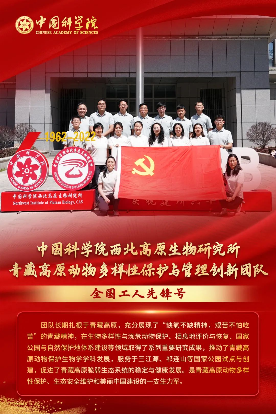 西北高原所青藏高原動(dòng)物多樣性保護(hù)與管理創(chuàng)新團(tuán)隊(duì)榮獲全國工人先鋒號榮譽(yù)稱號