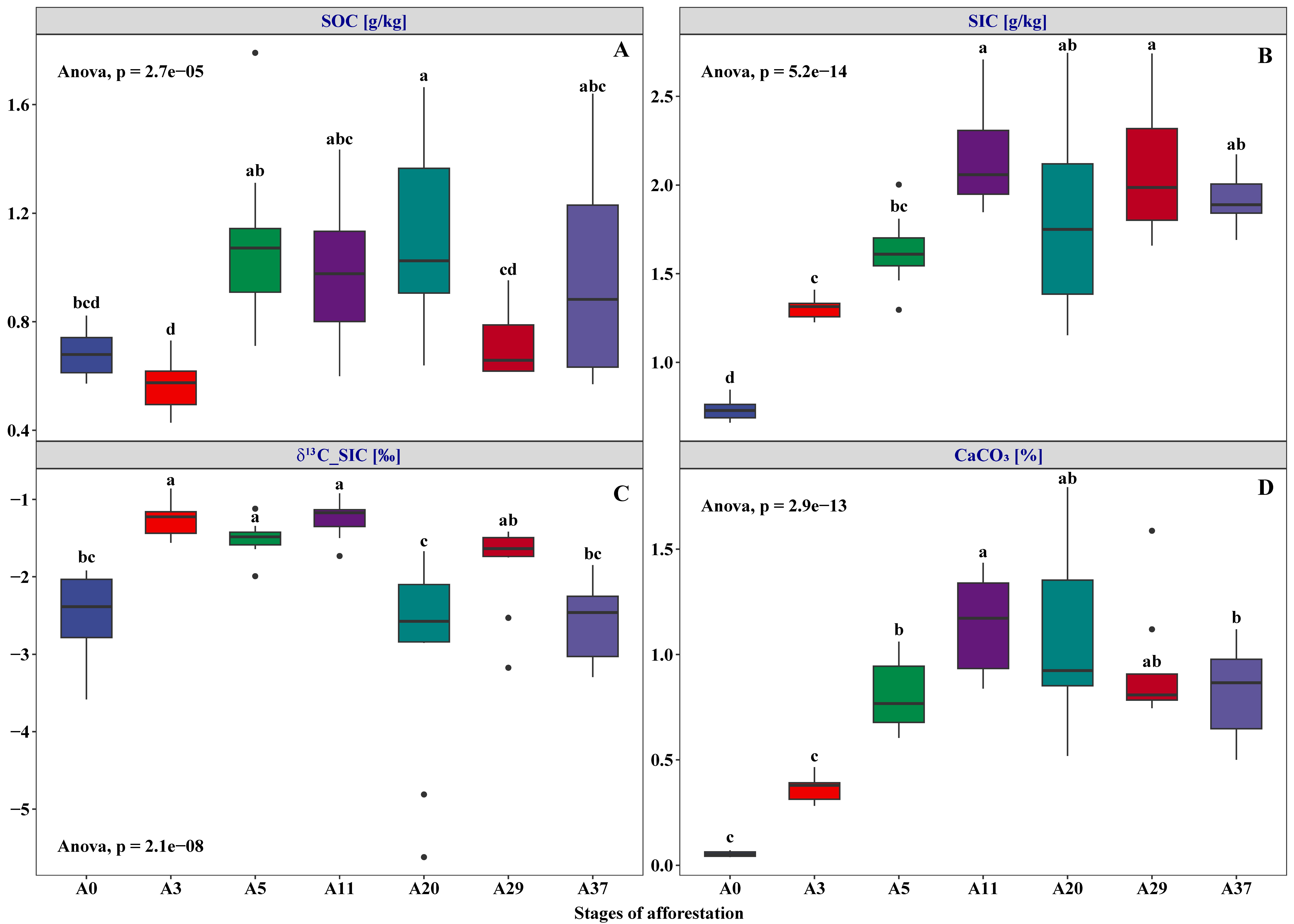 研究結(jié)果顯示,隨著飛播造林植被群落的不斷演替,飛播造林顯著改變了沙地土壤理化性質(zhì)和微生物群落結(jié)構(gòu),同時大量的鹽分和氮元素隨著掉落物和生物量進(jìn)入土壤,在荒漠區(qū)豐富的鈣離子和鎂離子膠結(jié)作用下,形成土壤團(tuán)聚體,從而起到固定土壤有機(jī)碳的作用。