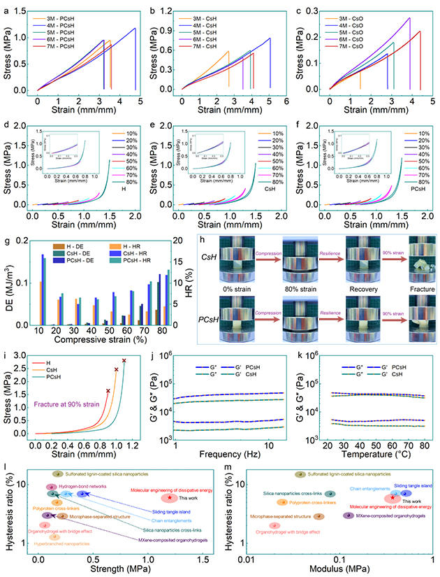 圖4. 耗散能分子工程構(gòu)筑的超彈性水凝膠的實驗驗證