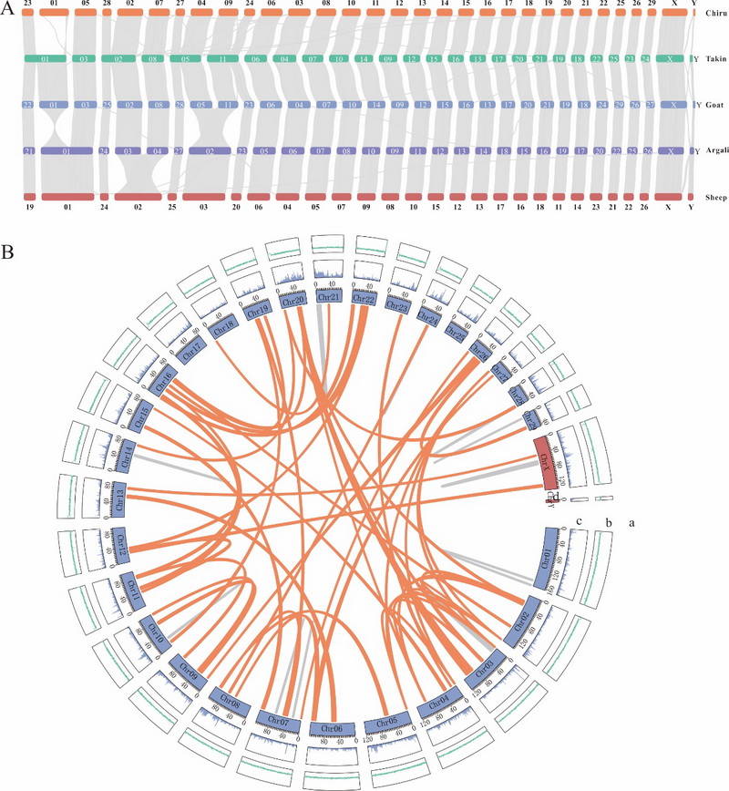 藏羚的基因組特征及與近緣物種之間的基因組共線性結果