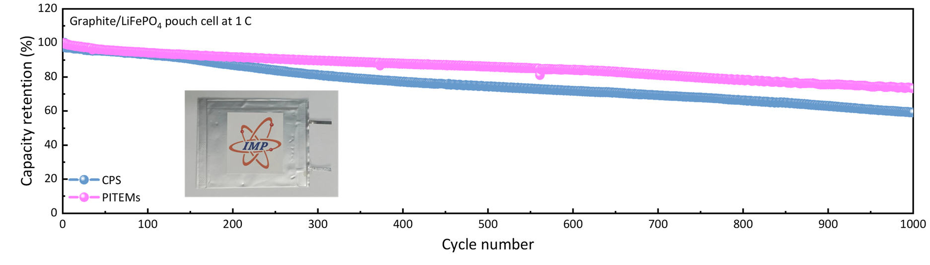 圖2 :磷酸鐵鋰軟包電池的長循環(huán)性能對照
