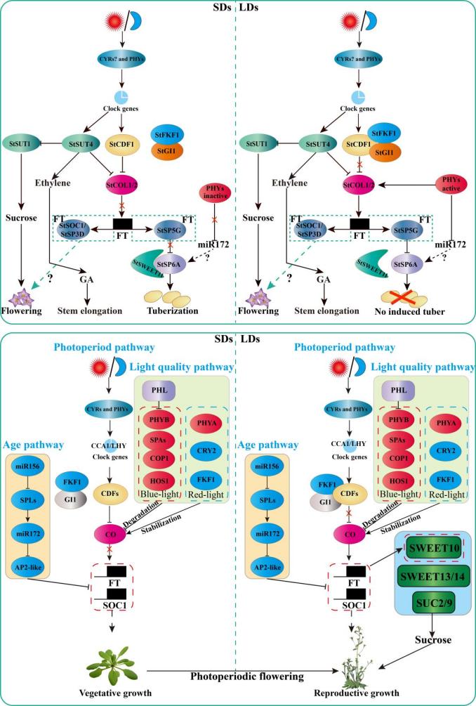 糖轉運蛋白的主要作用是源庫運輸與調(diào)控,影響植物生長發(fā)育,響應環(huán)境脅迫,與其他信號轉導通路的交互,介導植物-微生物的互作?;诖耍恼绿岢隽送ㄟ^糖轉運蛋白提高作物產(chǎn)量的策略,增強糖轉運蛋白與共生微生物的相互作用,提高作物對養(yǎng)分(如磷和氮)的吸收和運輸效率,從而促進作物生長,增加作物產(chǎn)量;建立光周期-糖轉運蛋白模型,提高光合效率與資源分配,優(yōu)化光合作用,提高作物產(chǎn)量;借助 GWAS(全基因組關聯(lián)分析)和QTL(數(shù)量性狀位點)定位技術及基因編輯(如 CRISPR-Cas9)相結合的技術,通過遺傳策略改良作物,以達到增加作物產(chǎn)量的目的。該綜述文章為深入理解糖轉運蛋白的作用機制提供了新思路,為提高作物產(chǎn)量提供了新的策略,對保障糧食安全具有重要參考價值和理論指導意義。