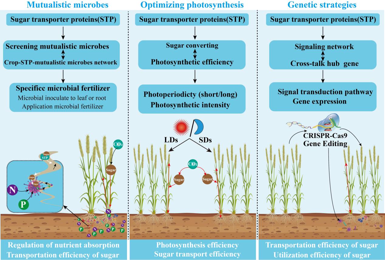 圖4.?通過糖轉運蛋白提高作物產(chǎn)量的關鍵策略