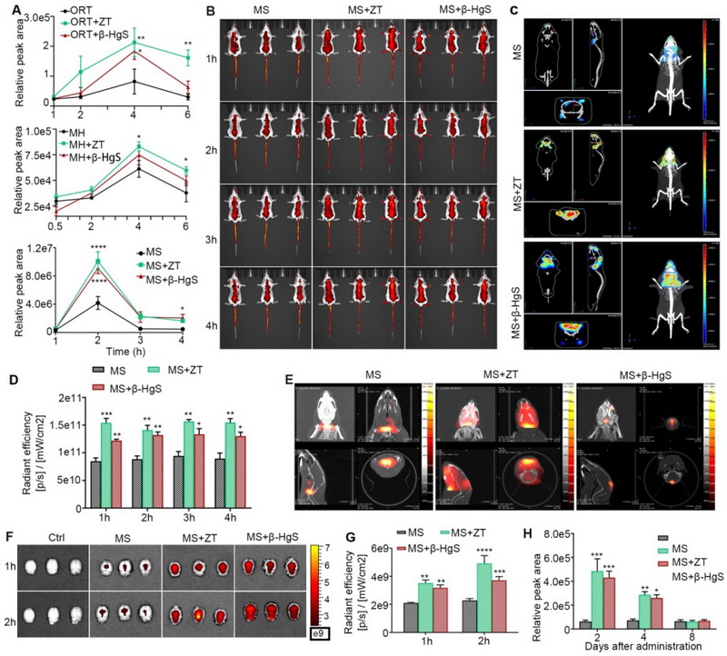 進一步體內(nèi)檢測證實,HgS金屬制劑能夠促進多種小分子藥物入腦,尤其是能夠?qū)S-275的入腦量提高3倍以上,并能夠促進藥物對APP/PS1小鼠的空間學習和記憶能力的改善作用。體外實驗更直觀的觀測到,金屬制劑能夠在給藥48h后高效的促進藥物進入人腦微血管內(nèi)皮細胞,證實其通過增量實現(xiàn)增效的作用機制。