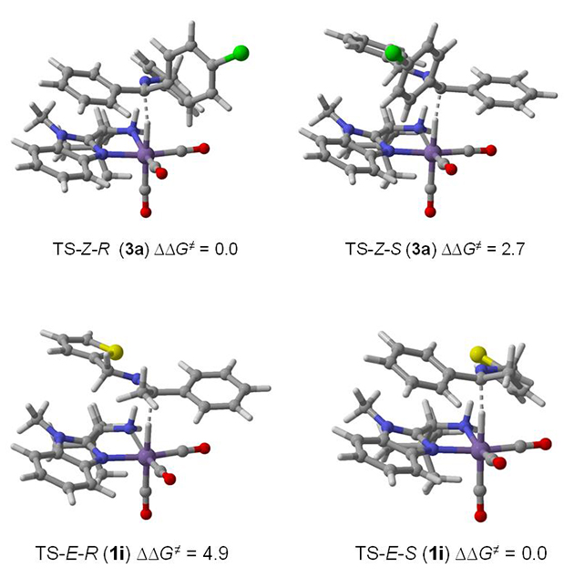 圖2.含雜原子亞胺和雙芳基亞胺的不對(duì)稱氫轉(zhuǎn)移過(guò)程的過(guò)渡態(tài)模型