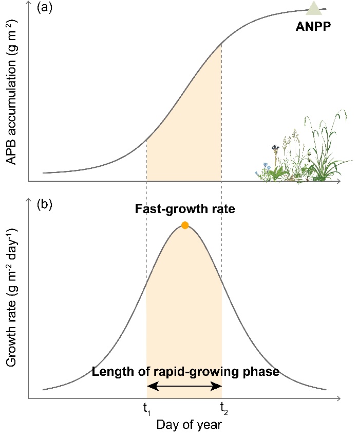 圖1 地上生物量積累與快速生長期的概念示意圖