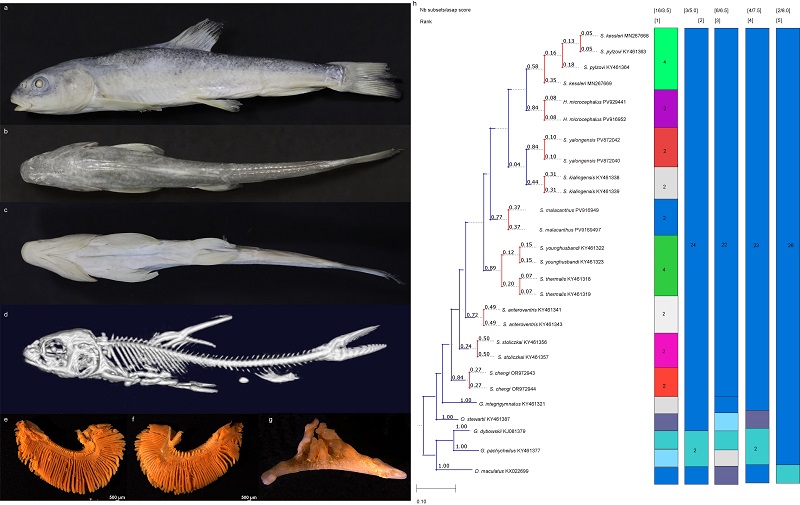 大渡裸裂尻魚多柯亞種(Schizopygopsis chengi duokeheensis)模式標(biāo)本及(a-f)及系統(tǒng)發(fā)育關(guān)系(g-h)