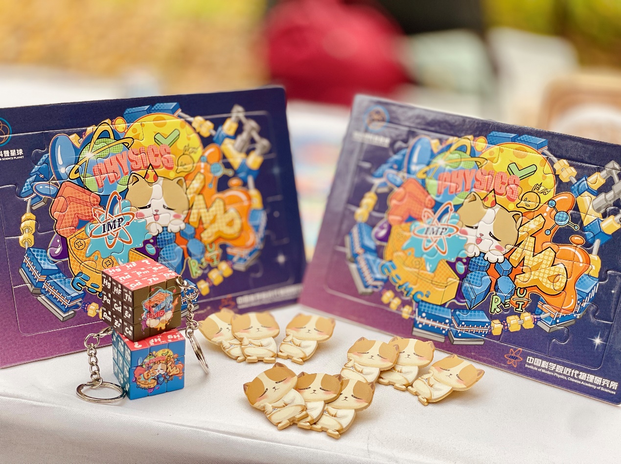 近代物理所通過現(xiàn)場展示“碳離子精準(zhǔn)治療癌癥技術(shù)及裝置”模型,使得公眾直觀了解到科技創(chuàng)新成果如何促進(jìn)人民生命健康領(lǐng)域的發(fā)展。近代物理所還展出了以“原子核”“新核素”“加速器”為主題的水晶球夜燈、魔方鑰匙扣、拼圖等文創(chuàng)展品。