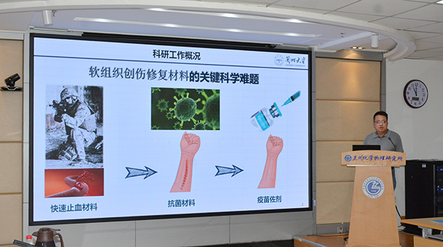 趙光輝作了題為“組織修復(fù)用生物醫(yī)用材料”的報告,聚焦高效動脈止血材料研發(fā)與構(gòu)效關(guān)系研究,分享了在組織修復(fù)用高分子生物材料、殼聚糖止血粉、新型疫苗佐劑方面的最新研究成果與應(yīng)用。