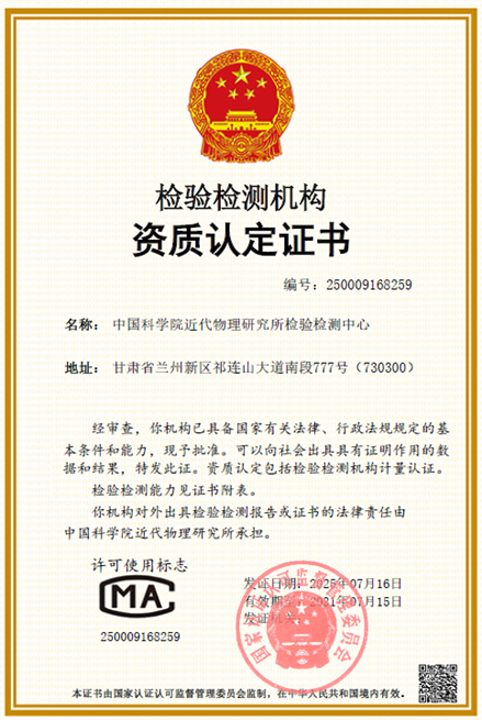 近代物理所檢驗檢測中心通過CMA資質認定
