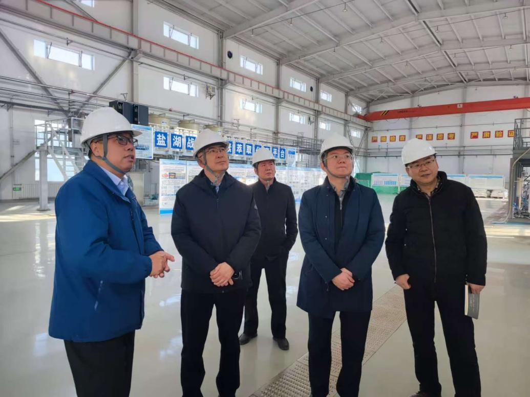 11月23日上午,中國鹽湖集團黨委書記、董事長薛飛,總工程師陳宋璇一行,前往青海鹽湖所甘河中試基地開展實地調(diào)研。副所長馮海濤陪同調(diào)研。