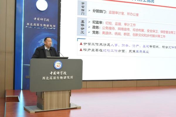 陳世龍所長代表所領(lǐng)導(dǎo)班子作了題為“扎根青藏高原 聚焦高原生物 保障生態(tài)安全”的2025年度工作總結(jié)和述職報(bào)告。報(bào)告詳細(xì)闡述了“十四五”完成情況,就深入學(xué)習(xí)貫徹黨的二十屆四中全會(huì)精神,貫徹落實(shí)2025年度院工作會(huì)議精神,聚焦院黨委重大決策部署,研究所重大科研項(xiàng)目進(jìn)展、高水平科研成果產(chǎn)出等內(nèi)容進(jìn)行匯報(bào),并對(duì)2026年重點(diǎn)工作進(jìn)行部署。
