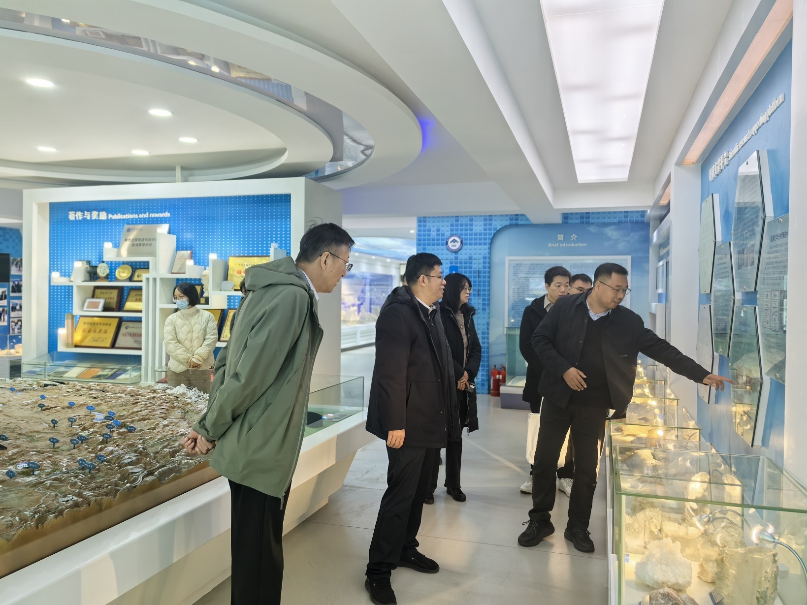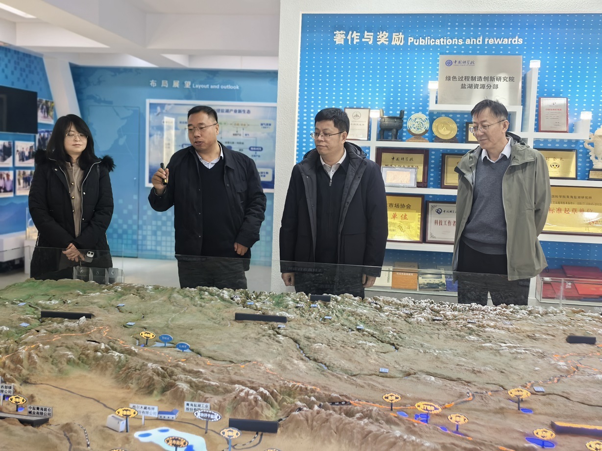萬士林一行先后參觀了青海鹽湖所科技成果展廳及地質(zhì)與環(huán)境實驗室展覽館,詳細(xì)了解了研究所的歷史沿革、科研平臺建設(shè)、人才隊伍構(gòu)成、重要科研成果及在鹽湖資源開發(fā)利用方面的研究進(jìn)展。