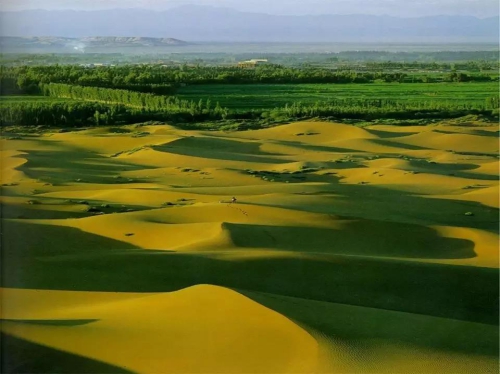 現(xiàn)實中,能夠孕育新生命的綠洲具有生態(tài)系統(tǒng)的脆弱和易變等特性。歷史上各種原因造成的水源枯竭、河水?dāng)嗔?、土地沙漠化及土壤鹽漬化、植被毀滅,往往導(dǎo)致綠洲遷移。我國西北地區(qū)5%左右的綠洲供養(yǎng)著95%的干旱區(qū)人口,綠洲的穩(wěn)定可持續(xù)發(fā)展非常重要?!?/p>